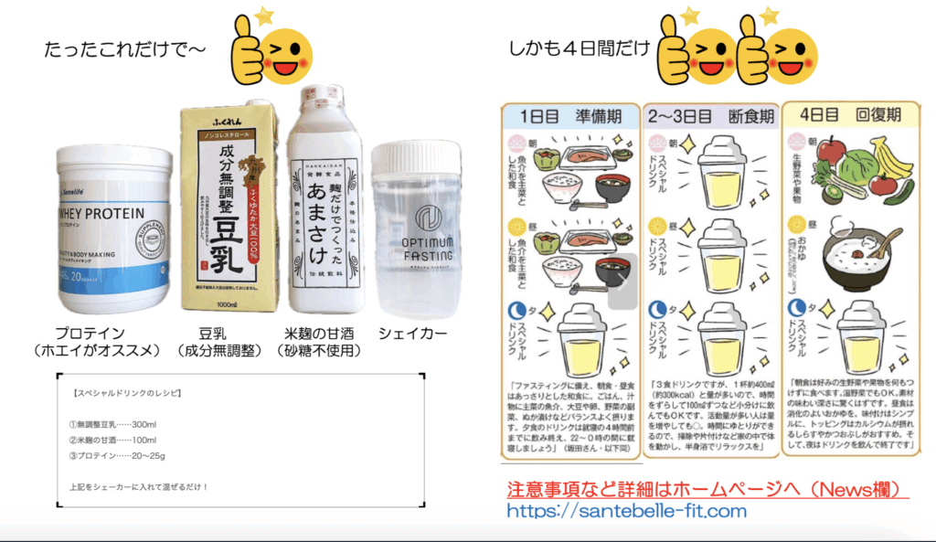 - 初日は軽い頭痛や空腹感が出る人もいますが、無理に続けないこと。